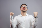 zbliżenie portret młodego gniewnego mężczyzny z zaciśniętymi pięściami