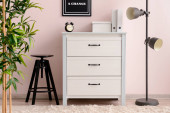 Zdjęcie "Nowoczesna komoda w pobliżu ściany kolor w pokoju" może być wykorzystywane do celów osobistych i komercyjnych zgodnie z warunkami zakupionej licencji Royalty-free. Obraz jest dostępny do pobrania w jakości wysokiej rozdzielczości do 5760x3840.
