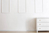Nowoczesna komoda w pobliżu ściany światła w pokoju