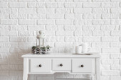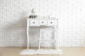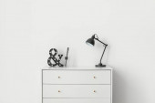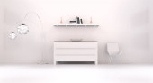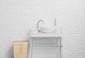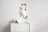 Nowoczesna komoda z wyposażeniem kąpielowym w pobliżu bieli w pokoju