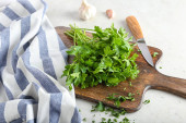 Zdjęcie "Świeża pietruszka i przyprawy na jasnym tle" może być wykorzystywane do celów osobistych i komercyjnych zgodnie z warunkami zakupionej licencji Royalty-free. Obraz jest dostępny do pobrania w jakości wysokiej rozdzielczości do 5760x3840.
