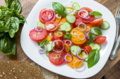Zdjęcie "sałatka pomidorowa i bazylia" może być wykorzystywane do celów osobistych i komercyjnych zgodnie z warunkami zakupionej licencji Royalty-free. Obraz jest dostępny do pobrania w jakości wysokiej rozdzielczości do 5760x3840.