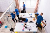 Zdjęcie "Profesjonalne usługi sprzątania biura z maskami twarzy" może być wykorzystywane do celów osobistych i komercyjnych zgodnie z warunkami zakupionej licencji Royalty-free. Obraz jest dostępny do pobrania w jakości wysokiej rozdzielczości do 5760x3840.