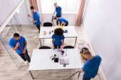 Zdjęcie "Profesjonalne usługi sprzątania biura z maskami twarzy" może być wykorzystywane do celów osobistych i komercyjnych zgodnie z warunkami zakupionej licencji Royalty-free. Obraz jest dostępny do pobrania w jakości wysokiej rozdzielczości do 5760x3840.