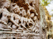 Zdjęcie "Bas-relief na ukrytym murze tarasu trędowatego króla. Rzeźby tancerzy Apsara i opiekunów podziemia, Angkor Wat (Angkor Thom), Siem żniwo, Kambodża. Skoncentrowanie się na figurze na pierwszym planie" może być wykorzystywane do celów osobistych i komercyjnych zgodnie z warunkami zakupionej licencji Royalty-free. Obraz jest dostępny do pobrania w jakości wysokiej rozdzielczości do 5760x3840.