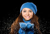 młoda kobieta szczęśliwa sobie szmatki zimowy