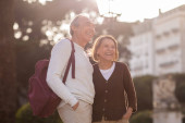 Uśmiechnięci turyści spacerujący po centrum miasta