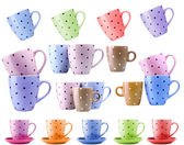 kolaż kubków kolorowy na białym tle