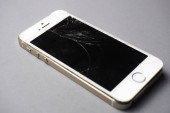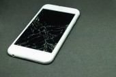 Ręczne trzymanie telefonu komórkowego z rozbitym ekranem szklanym