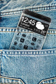 smartphone rezygnować przeźroczysty ekran w ludzkich rąk.