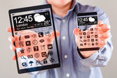 Zdjęcie "smartphone rezygnować przeźroczysty ekran w ludzkich rąk." może być wykorzystywane do celów osobistych i komercyjnych zgodnie z warunkami zakupionej licencji Royalty-free. Obraz jest dostępny do pobrania w jakości wysokiej rozdzielczości do 5760x3840.