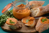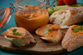 Zdjęcie "Puree z dyni (kawior squasha) w szklanym słoiku i na plasterkach chleba.Domowej roboty kawior z warzyw " może być wykorzystywane do celów osobistych i komercyjnych zgodnie z warunkami zakupionej licencji Royalty-free. Obraz jest dostępny do pobrania w jakości wysokiej rozdzielczości do 5760x3840.