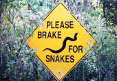 znak informujący o obecności niebezpiecznych zwierząt, takich jak lwy górskie i grzechotniki