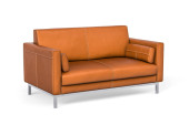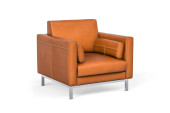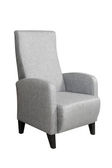 Pojedyncza szara sofa tkaninowa z drewnianymi nogami na białym tle - 3d render