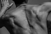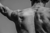 Mężczyzna ręce zbliżenie Czarno-biały obraz muskularny mężczyzna, atletyczny ciało, piękny męski forma mięsień, ulga. Piękne silne i elastyczne ciało, sexy atrakcyjne.