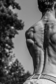 Mężczyzna ręce zbliżenie Czarno-biały obraz muskularny mężczyzna, atletyczny ciało, piękny męski forma mięsień, ulga. Piękne silne i elastyczne ciało, sexy atrakcyjne.