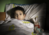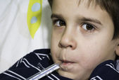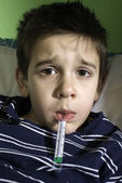 chore dziecko w łóżku z misiem