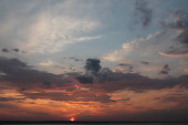 Pozioma uprawa nieba i morza podczas zachodu słońca