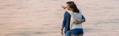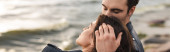 Uprawa pozioma młodej pary w skórzanych kurtkach stojących nad morzem