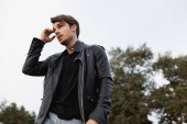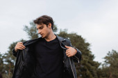 Zdjęcie "Młody mężczyzna w skórzanej kurtce patrzący w kamerę na morzu " może być wykorzystywane do celów osobistych i komercyjnych zgodnie z warunkami zakupionej licencji Royalty-free. Obraz jest dostępny do pobrania w jakości wysokiej rozdzielczości do 5760x3840.