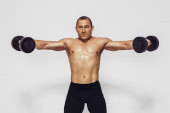 Zdjęcie "Muskularny mężczyzna z hantlami" może być wykorzystywane do celów osobistych i komercyjnych zgodnie z warunkami zakupionej licencji Royalty-free. Obraz jest dostępny do pobrania w jakości wysokiej rozdzielczości do 5760x3840.