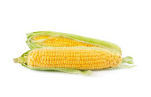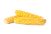 Dojrzałe kolby kukurydzy surowe izolowane na białym