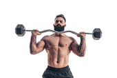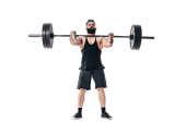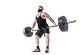 Zdjęcie "Technika wykonywania ćwiczenia deadlift ze sztangą umięśnionego silnego tatuażu brodatych mężczyzn sportowych na białym tle studio. Izolacja" może być wykorzystywane do celów osobistych i komercyjnych zgodnie z warunkami zakupionej licencji Royalty-free. Obraz jest dostępny do pobrania w jakości wysokiej rozdzielczości do 5760x3840.