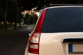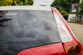 Zdjęcie "Tylne okno szarego samochodu zaparkowanego na ulicy w letni słoneczny dzień, widok z tyłu. Makieta naklejki lub naklejek" może być wykorzystywane do celów osobistych i komercyjnych zgodnie z warunkami zakupionej licencji Royalty-free. Obraz jest dostępny do pobrania w jakości wysokiej rozdzielczości do 5760x3840.