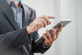 Zdjęcie "Koncepcja koronawirusa. Wsteczny widok mężczyzny oglądającego koncert na żywo podczas pobytu w domu. Zbliżenie mężczyzny korzystającego z muzycznego koncertu przez telefon komórkowy. Zostań w domu. Kwarantanna. Izolacja." może być wykorzystywane do celów osobistych i komercyjnych zgodnie z warunkami zakupionej licencji Royalty-free. Obraz jest dostępny do pobrania w jakości wysokiej rozdzielczości do 5760x3840.