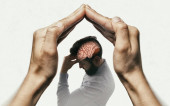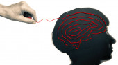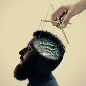 Marionetka w ludzkiej głowie. Koncepcja kontroli umysłu. Zdjęcie.