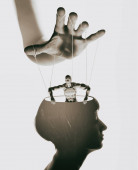 Zdjęcie "Marionetka w ludzkiej głowie. Koncepcja kontroli umysłu. Zdjęcie." może być wykorzystywane do celów osobistych i komercyjnych zgodnie z warunkami zakupionej licencji Royalty-free. Obraz jest dostępny do pobrania w jakości wysokiej rozdzielczości do 5760x3840.