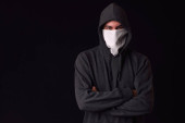 Zdjęcie "człowiek w czarne ubrania sobie klasyczne maski gazowe na ciemny tył" może być wykorzystywane do celów osobistych i komercyjnych zgodnie z warunkami zakupionej licencji Royalty-free. Obraz jest dostępny do pobrania w jakości wysokiej rozdzielczości do 5760x3840.