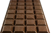 Close-up ciemnoczekoladowy bar izolowane na białym tle z selektywnym ostrości