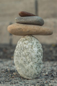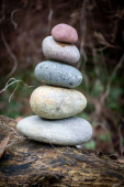 Pięć owalnych kamieni stoi na sobie w doskonałej równowadze.