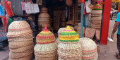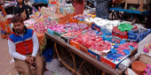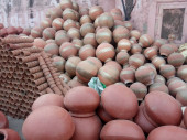 DISTRICT KATNI, INDIA - PAŹDZIERNIK 19 PAŹDZIERNIKA 2019: Garnek z lampą olejową wykonany z gleby Diya in hindi wystawiony na sprzedaż na bazarze podczas festiwalu hindu diwali.