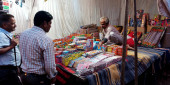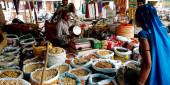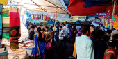 DISTRICT KATNI, INDIA - PAŹDZIERNIK 19 PAŹDZIERNIKA 2019: Azjatycka wioska biedna sprzedająca ofiary religijne podczas hinduskiego tradycyjnego festiwalu diwali, na lokalnym targu ulicznym.