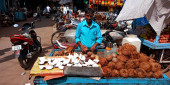 Zdjęcie "DISTRICT KATNI, INDIA - PAŹDZIERNIK 19 PAŹDZIERNIKA 2019: Azjatycki biedny chłopiec sprzedający ofiary bogów religijnych podczas hinduskiego tradycyjnego festiwalu diwali, na lokalnym targu ulicznym." może być wykorzystywane do celów osobistych i komercyjnych zgodnie z warunkami zakupionej licencji Royalty-free. Obraz jest dostępny do pobrania w jakości wysokiej rozdzielczości do 5760x3840.