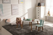 Nowoczesne wnętrze pokoju nastolatka z łóżkiem i fotelem
