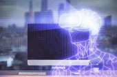 Zdjęcie "Podwójna ekspozycja osób AR rysunek i tło krajobraz miasta. Pojęcie rozszerzonej rzeczywistości." może być wykorzystywane do celów osobistych i komercyjnych zgodnie z warunkami zakupionej licencji Royalty-free. Obraz jest dostępny do pobrania w jakości wysokiej rozdzielczości do 5760x3840.