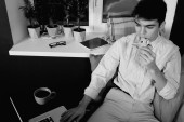Zdjęcie "Portret młodego, przystojnego, androgenicznego biznesmena zwiedzającego miasto w czerni i bieli" może być wykorzystywane do celów osobistych i komercyjnych zgodnie z warunkami zakupionej licencji Royalty-free. Obraz jest dostępny do pobrania w jakości wysokiej rozdzielczości do 5760x3840.