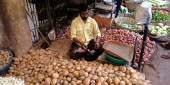 Zdjęcie "DISTRICT KATNI, INDIA - 12 sierpnia 2019: azjatycki warzywniak sprzedający świeże produkty rolne na rynku." może być wykorzystywane do celów osobistych i komercyjnych zgodnie z warunkami zakupionej licencji Royalty-free. Obraz jest dostępny do pobrania w jakości wysokiej rozdzielczości do 5760x3840.
