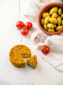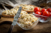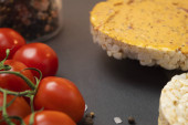 Sól morska z przyprawami i goframi ryżowymi. Zdrowe i zdrowe jedzenie. Dieta i zdrowie