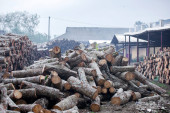 DISTRICT KATNI, INDIA - WRZESIEŃ 16, 2019: Zapasy drewna w tartaku na terenie tartaku.