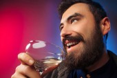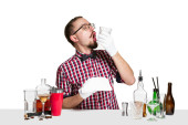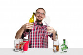 Portret męskiego sommelier w garniturze wyizolowanym na białym tle