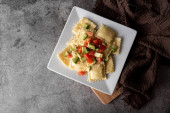 Zdjęcie "Enchiladas z kurczaka limonkowego z dodatkami" może być wykorzystywane do celów osobistych i komercyjnych zgodnie z warunkami zakupionej licencji Royalty-free. Obraz jest dostępny do pobrania w jakości wysokiej rozdzielczości do 5760x3840.