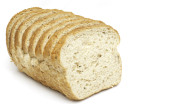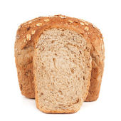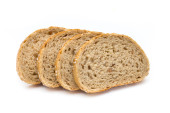 Pięć plasterków pysznego świeżego chleba na białym tle