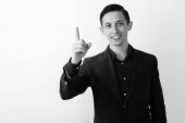 Studio zdjęcie młodego przystojnego biznesmena na białym tle w czerni i bieli