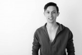 Studio zdjęcie młodego przystojnego biznesmena na białym tle w czerni i bieli