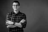 Studio zdjęcie młodego przystojnego biznesmena na białym tle w czerni i bieli