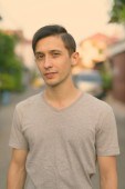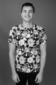 Studio strzał młody przystojny nerd człowiek na białym tle w czerni i bieli